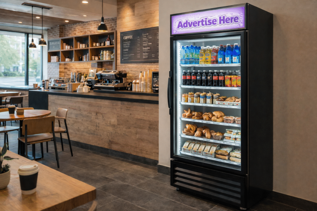 Get more out your business by seasing space to other businesses to advertise. e.g Fridge  tops, posters and menu Drinks